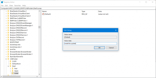 Double-click on the (Default) string too alter its Value information to Install this update.